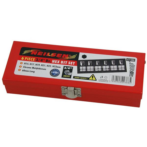 6pc 3/4in Drive Hex Bit Set - Chrome Molybdenum 14mm to 23mm Tools CT1388