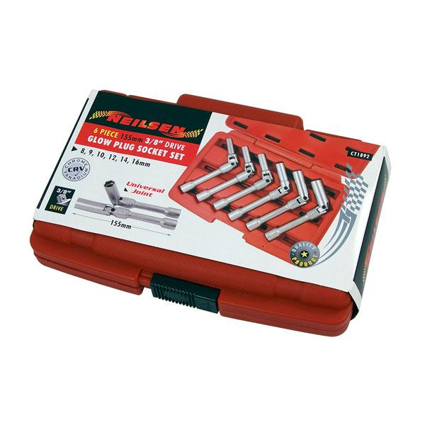 6pc Glow Plug Socket Set 3/8" Drive Universal Joint CT1892