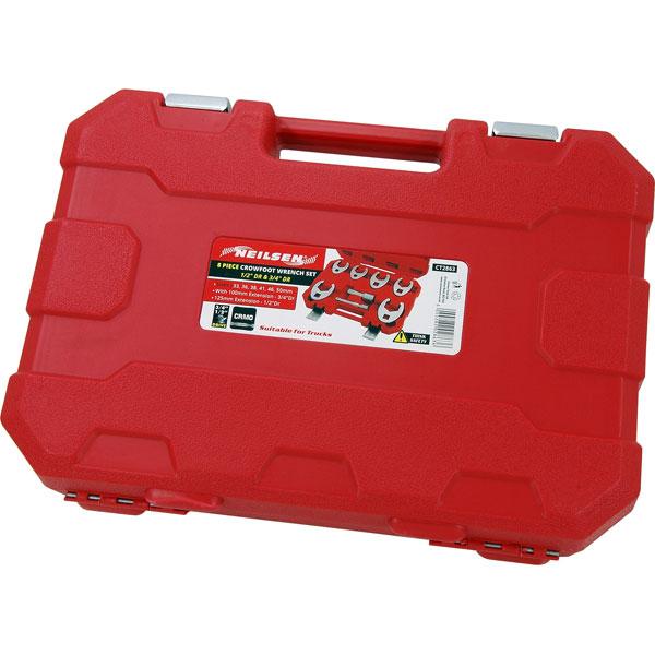 This 8-piece crow foot wrench set speeds up the removal or installation of hard-to-reach fasteners and is ideal where conventional sockets can’t be used. Comes with multiple drive sizes and extensions—an essential tool for every garage and workshop. Features: